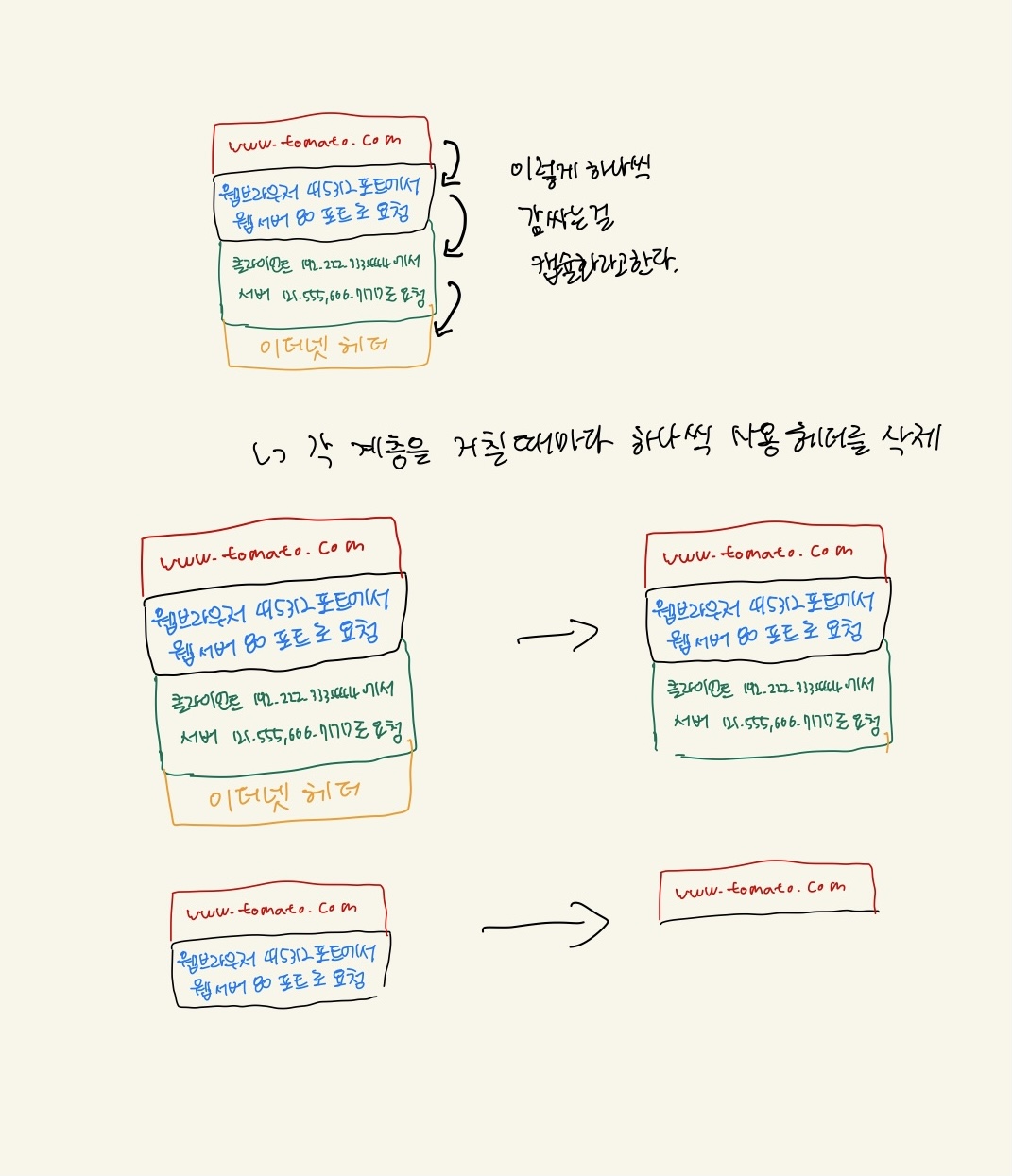 데이터에 어드레스 정보를 붙여 목적지까지 전달