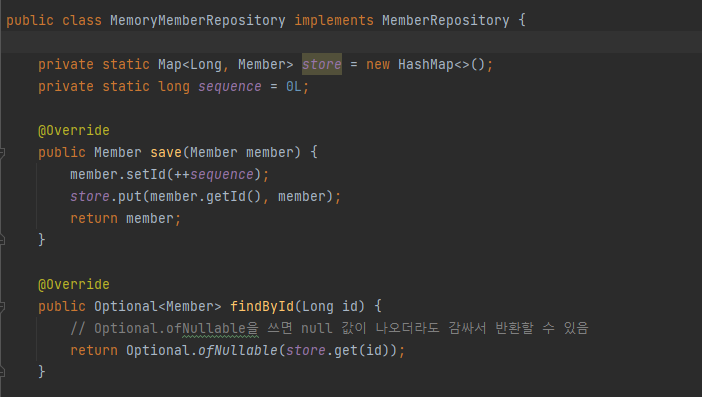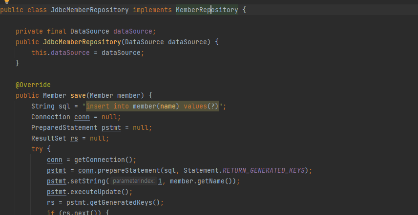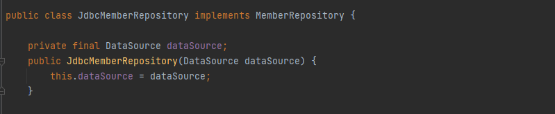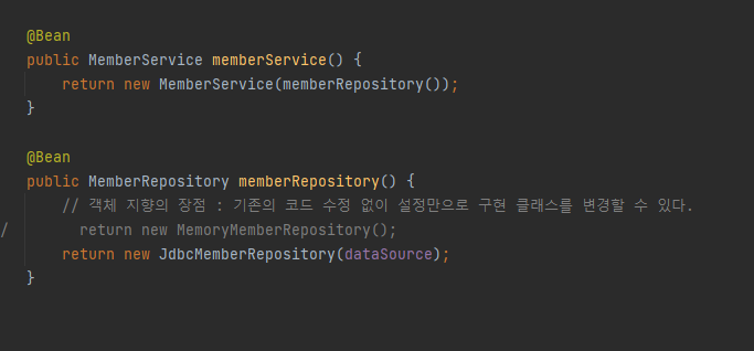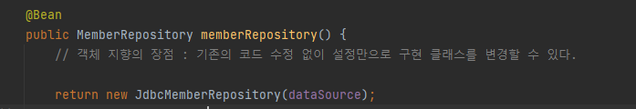MemberRepository 인터페이스를 등록하는 @bean에 리턴 값을 JdbcMemberRepository을 넣어줬다.