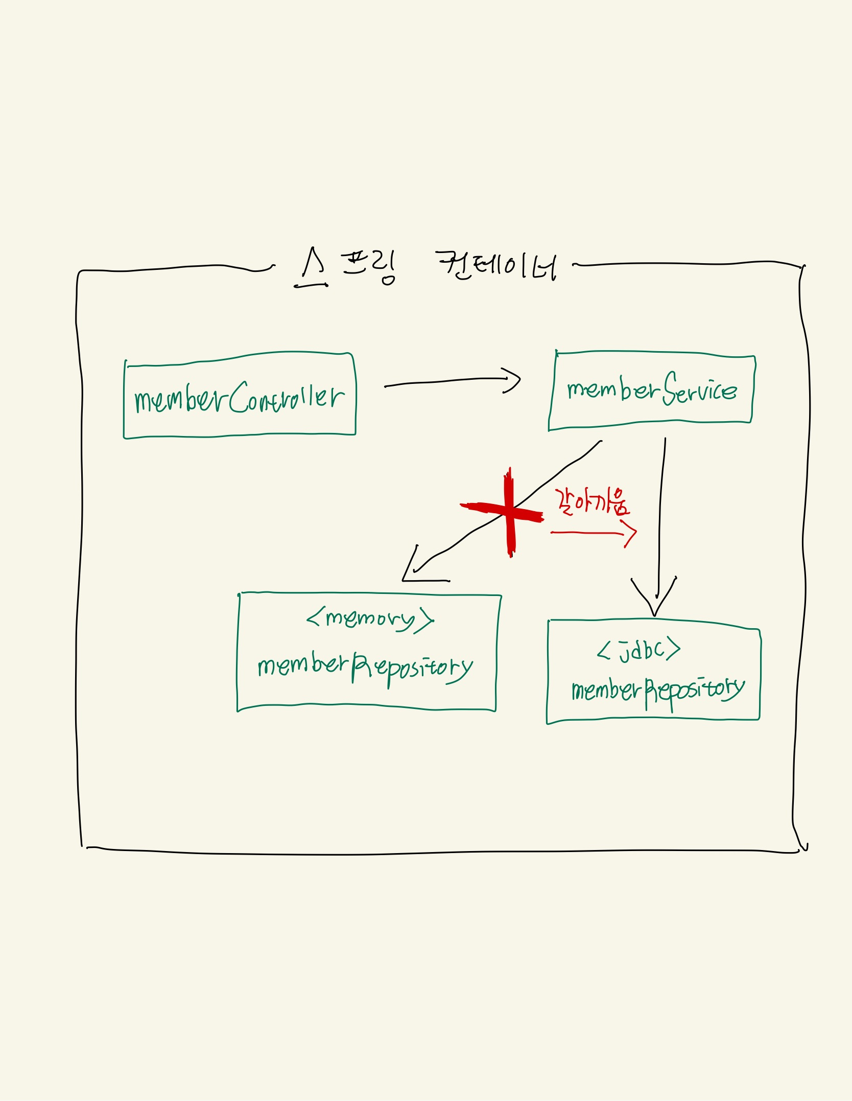 * 쉽게 말해 MemberRepository 인터페이스에 객체 JdbcMemberRepository를 꽂아 사용