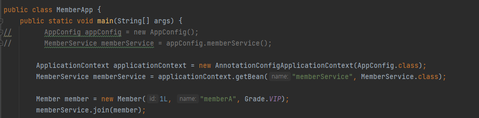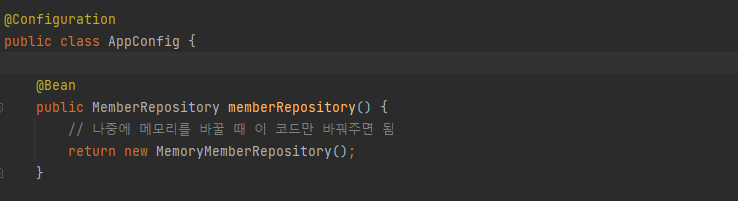 외부 클래스 AppConfing에서 생성한 객체들을 메소드를 통해 주입