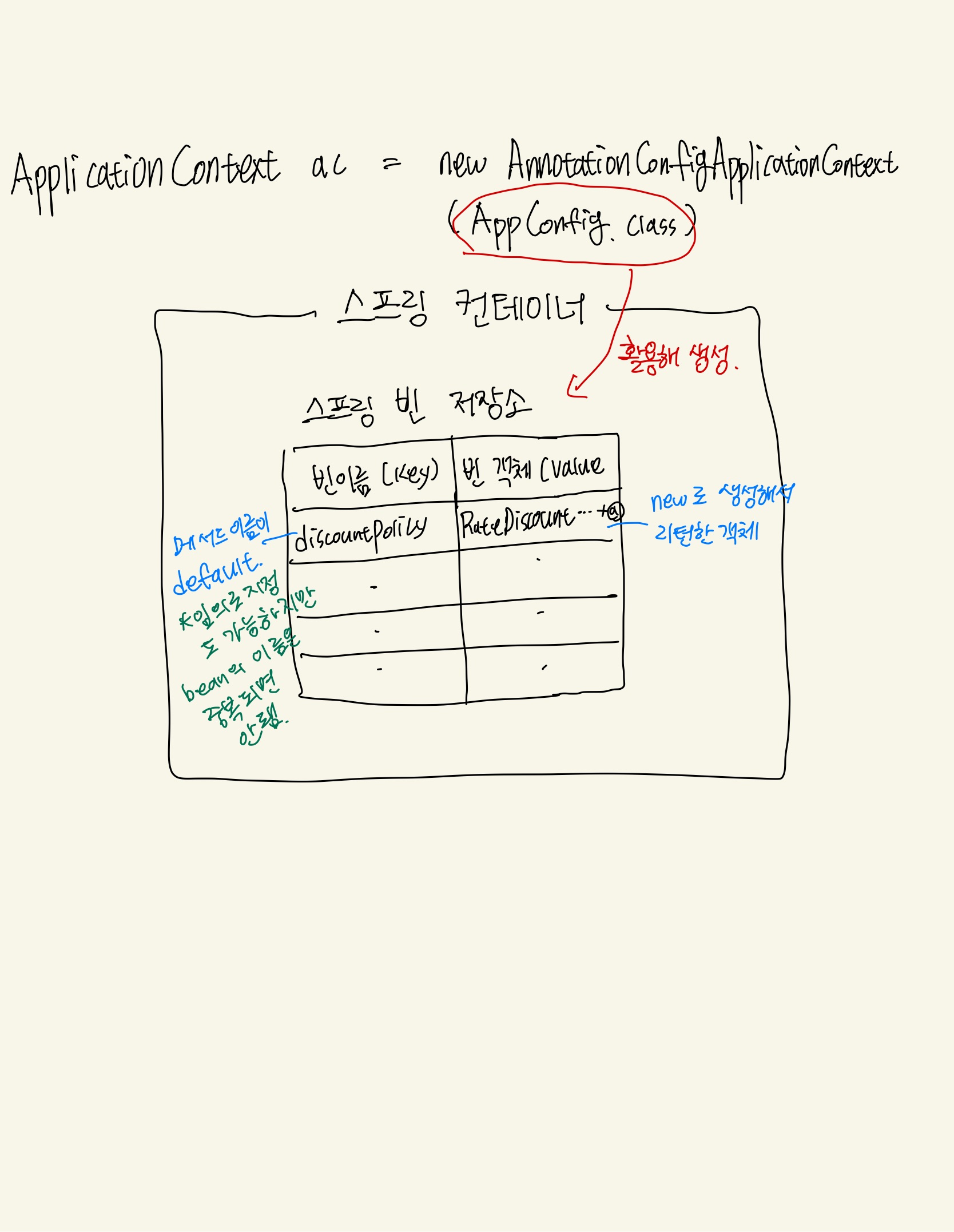 스프링은 AppConfig의 구성 정보를 이용해 스프링 컨테이너를 구성한다.
