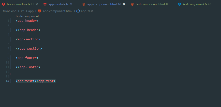 이를 통해 app.component.html에서 test.component인 <app-test></app-test>를 사용할 수 있었다.
