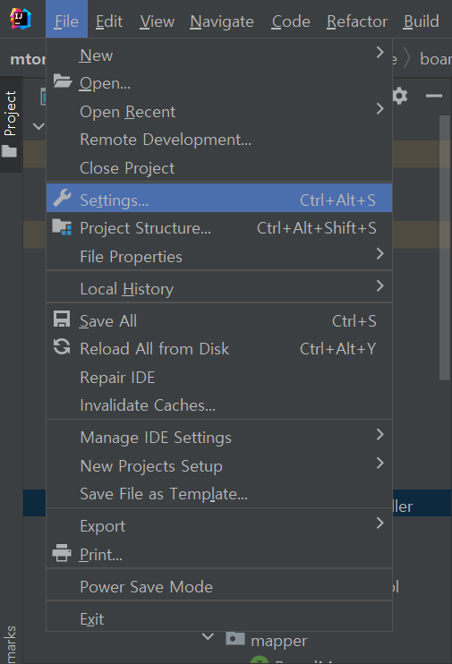 - 기본 gradle로 설정되어 있지만 인텔리제이로 설정해야 좀 더 빠르게 WAS를 실행할 수 있다.