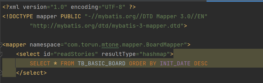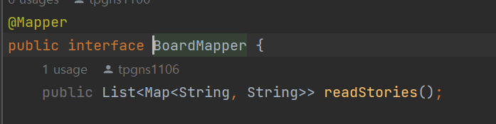 - 서비스 -> 매퍼 -> XML (마이바티스)를 통해 DB에서 List<Map<String, String>> 형식으로 모든 글을 조회한다.