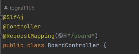 Controller에 @RequestMapping으로 /board 주소를 매핑하였다.