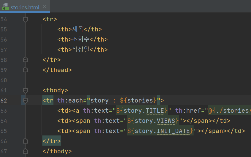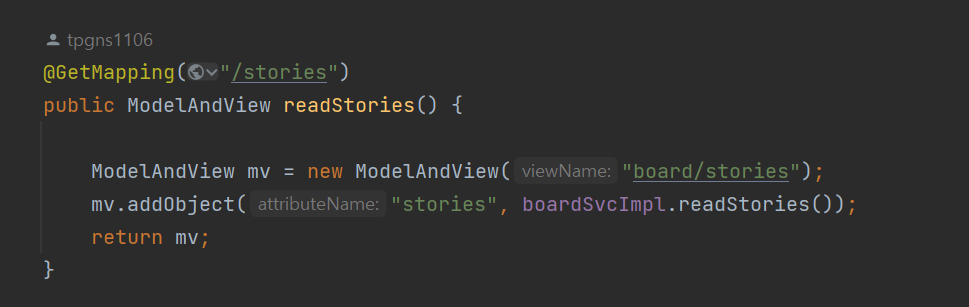 - 이 객체를 ModelAndView 방식으로 stories.html으로 던진다.