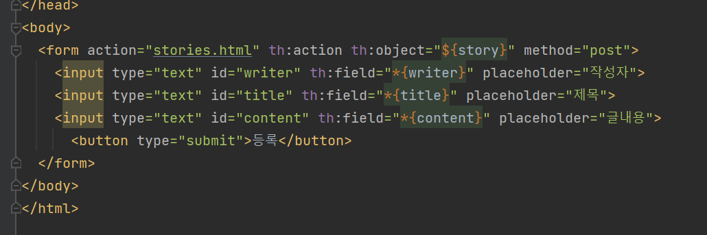 th:object는 form 데이터를 하나의 객체로 매핑해준다.