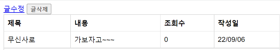 | [게시판] 글수정 (0) | 2022.09.14 |