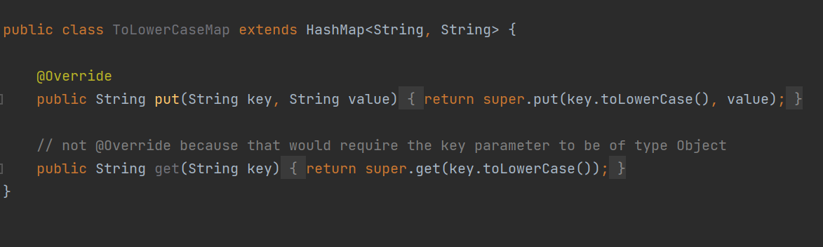 그러다 발견한 방법은 HashMap을 상속 받아 재정의하는 것이다.