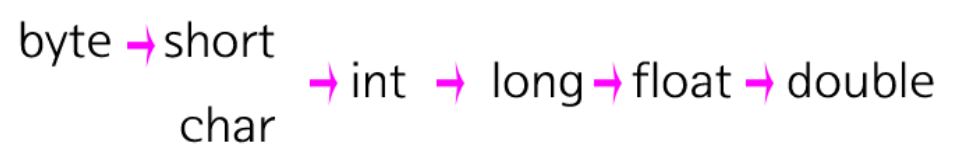자바는 작은 데이터 타입에서 큰 데이터 타입으로 형변환하는 경우 자동으로 변형해주도록 세팅 되어있다.