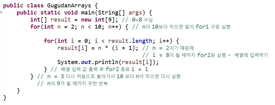 - 계산하는 1부터 9까지 숫자가 필요, 단수는 2부터 9까지 필요