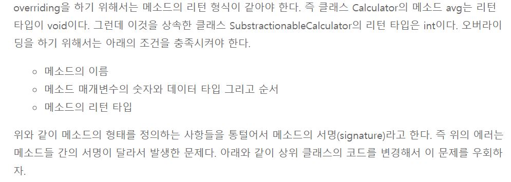 리턴할 때 주의점, 오버라이딩 메소드 불일치 오류